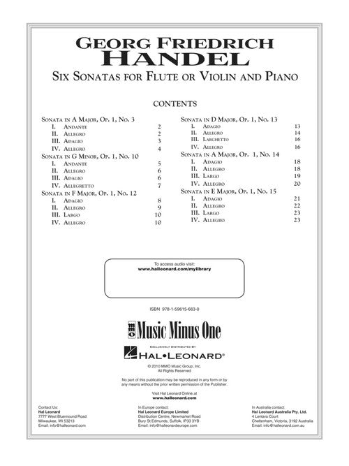 Handel - Six Sonatas for Flute and Piano Music Minus One Flute