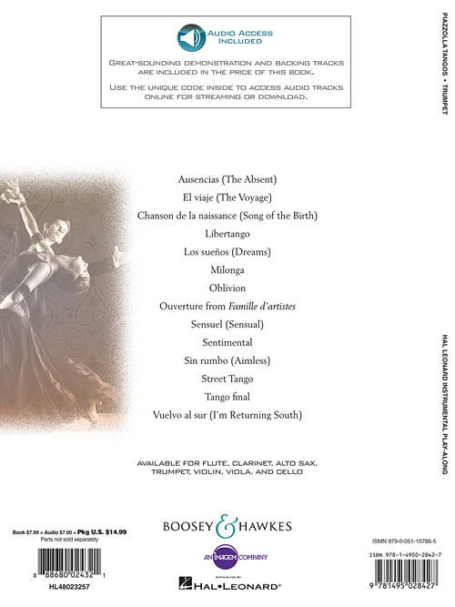 Piazzolla Tangos Trumpet Publisher: Boosey & Hawkes Category: Solo Instrumental Series: Boosey & Hawkes Chamber Music Format: Softcover Audio Online 14 of Astor Piazzolla's most famous tangos are now playable for budding instrumentalists in this collection...Regular price $17.99 -