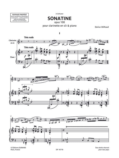 Sonatine, Opus 100for Clarinet (B-flat) and PianoPublisher: DurandCategory: Solo InstrumentalSeries: Editions DurandFormat: SoftcoverDarius Milhaud was certainly one of the most prolific artists of the 20th century. He was a well-known composer in many other fields, such...Regular price $23.99 -
