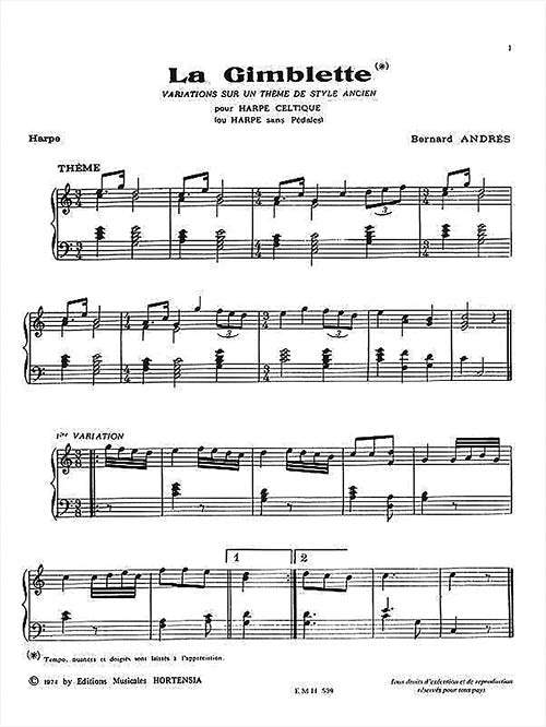 La Gimblette for Celtic Harp (or Harp Without Pedal)