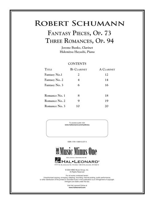 Schumann - 5 Fantasy Pieces, Op. 73 and 3 Romances, Op. 94Music Minus One ClarinetPublisher: Music Minus OneCategory: Solo InstrumentalSeries: Music Minus OneFormat: Softcover Audio OnlinePieces by the great Romantic master, Robert Schumann, which offer less...Regular price $20.99