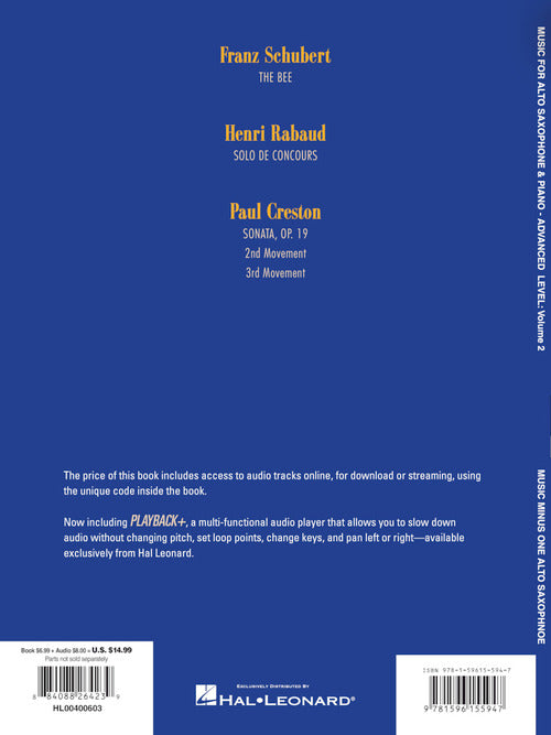 Advanced Alto Sax Solos - Volume 2Music Minus One Alto SaxophonePublisher: Music Minus OneCategory: Solo InstrumentalSeries: Music Minus OneFormat: Softcover Audio OnlinePerformed by Vincent Abato, alto saxophone Accompaniment: Harriet Wingreen, piano Listen as extraordinary virtuoso Vincent...Regular price $20.99 -