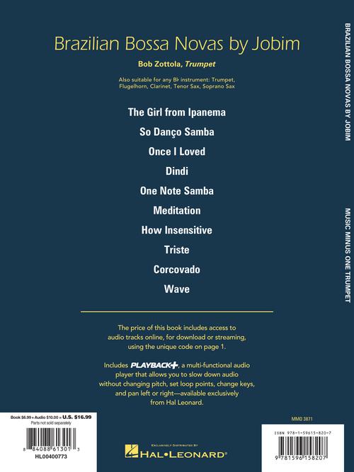 Brazilian Bossa Novas by JobimPublisher: Music Minus OneCategory: Solo InstrumentalSeries: Music Minus OneFormat: Softcover Audio OnlineDecades after they were written, the great songs of Antonio Carlos Jobim, with their beautiful melodies, heartfelt lyrics and haunting atmosphere,...Regular price $20.99 -