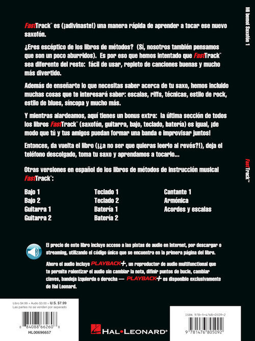 Saxofón 1FastTrack Alto Saxophone Method - Book 1 - Spanish EditionPublisher: Hal LeonardCategory: Solo InstrumentalSeries: Fast Track Music InstructionFormat: Softcover Audio OnlineNow translated into Spanish, this saxophone instruction book in the acclaimed FastTrack series teaches beginning...Regular price $11.99