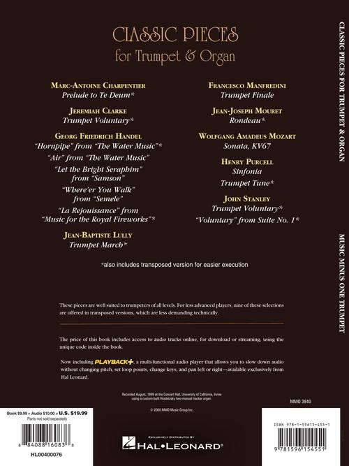 Classic Pieces for Trumpet & OrganBook/Online AudioPublisher: Music Minus OneCategory: Solo InstrumentalSeries: Music Minus OneFormat: Softcover Audio OnlinePerformed by Alfred Lang, trumpet Accompaniment: Audrey Jacobsen A stupendous collection of 17th- and 18th-century pieces for trumpet and...Regular price $27.99 -