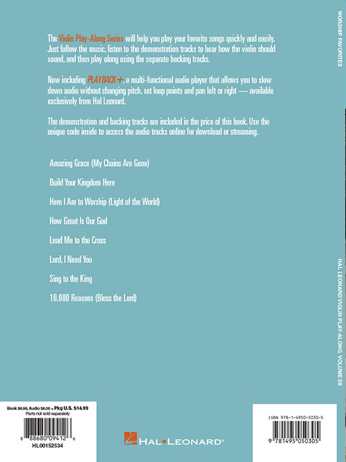 Worship FavoritesViolin Play-Along Volume 59Publisher: Hal LeonardCategory: Solo InstrumentalSeries: Violin Play-AlongFormat: Softcover Audio OnlineThe Violin Play-Along series will help you play your favorite songs quickly and easily. Just follow the music, listen to the demonstration tracks...Regular price $20.99