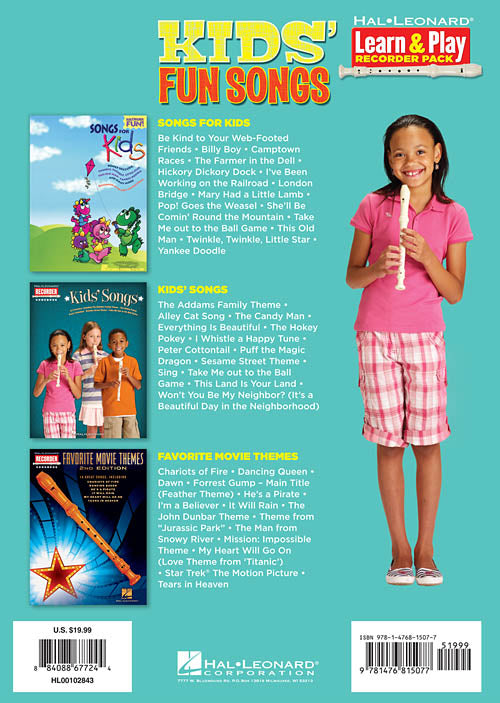 Kids' Fun SongsLearn & Play Recorder PackPublisher: Hal LeonardCategory: Solo InstrumentalSeries: RecorderFormat: PaperbackThis collection features three books packed with 40 songs kids love, plus a top-quality recorder on which to play them! Includes: The Addams Family...Regular price $23.99 -