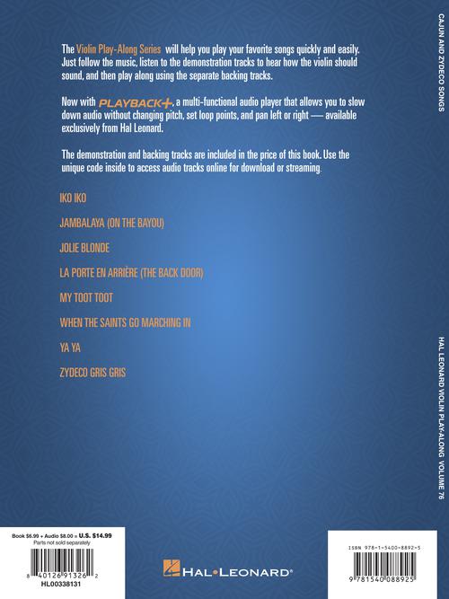 Cajun & Zydeco SongsViolin Play-Along Volume 76Publisher: Hal LeonardCategory: Solo InstrumentalSeries: Violin Play-AlongFormat: Softcover Audio OnlineThe Violin Play-Along Series will help you play your favorite songs quickly and easily. Just follow the music, listen to the...Regular price $17.99 -
