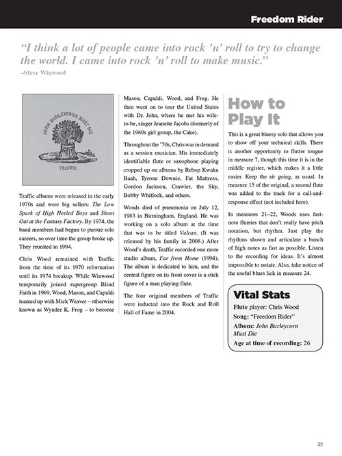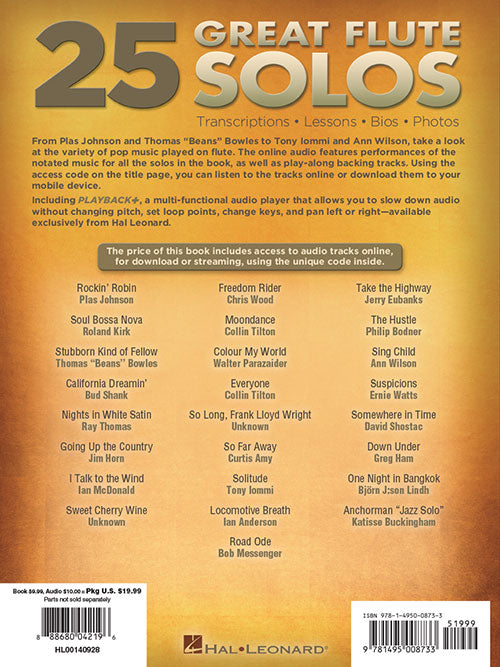 25 Great Flute SolosTranscriptions · Lessons · Bios · PhotosPublisher: Hal LeonardCategory: Solo InstrumentalSeries: Flute InstructionFormat: Softcover Audio OnlineFrom Plas Johnson and Thomas Beans Bowles to Tony Iommi and Ann Wilson, take a look at the...Regular price $23.99 -