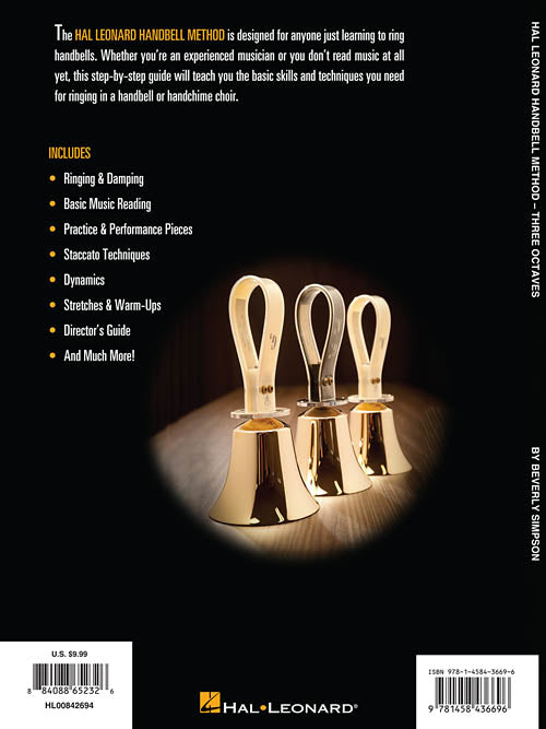 Author: Beverly SimpsonThe Hal Leonard Handbell MethodThree OctavesPublisher: Hal LeonardCategory: Solo InstrumentalSeries: InstructionalFormat: SoftcoverThe Hal Leonard Handbell Method is designed for anyone just learning to ring handbells. Whether you're an experienced musician or you don't read...Regular price $15.99