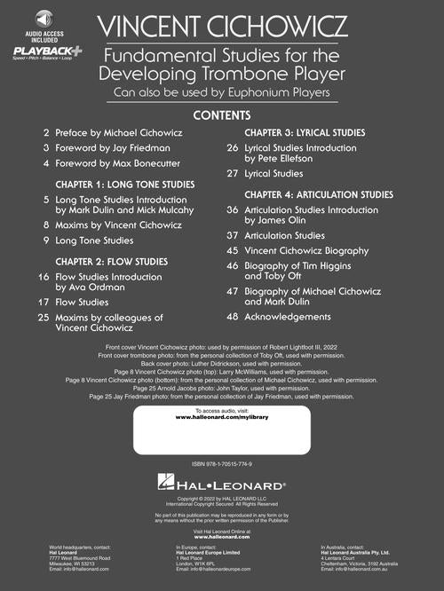 Vincent Cichowicz - Fundamental Studies for the Developing Trombone PlayerCan Also Be Used with Euphonium PlayersPublisher: Hal LeonardCategory: Solo InstrumentalSeries: InstructionalFormat: Softcover Audio OnlineVincent Cichowicz (1927-2006) was a member of the Chicago Symphony Orchestra from 1952-1974...Regular price $17.99 -