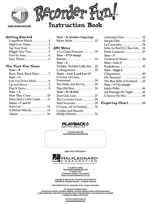 Recorder Fun! Teach Yourself the Easy Way!Publisher: Hal LeonardCategory: Solo InstrumentalSeries: RecorderFormat: Softcover Audio OnlineThis book with online audio will have you playing 40 great songs on recorder in no time! The book includes all the...Regular price $11.99 -