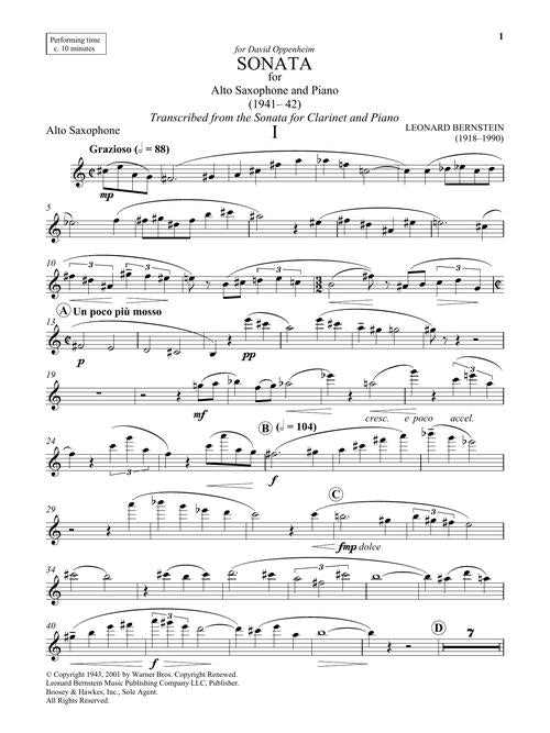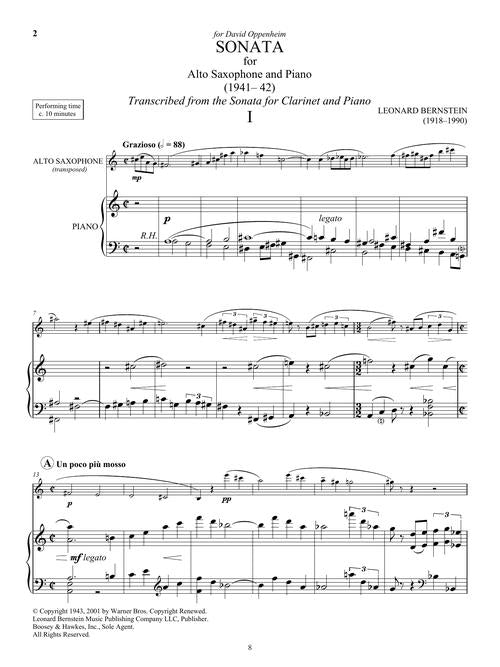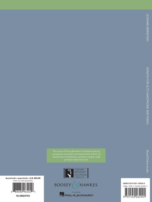 Sonata for Alto Saxophone and PianoTranscribed from the Sonata for ClarinetPublisher: Boosey & HawkesCategory: Solo InstrumentalSeries: Boosey & Hawkes Chamber MusicFormat: Softcover Audio OnlineBernstein's clarinet sonata has been transcribed for alto saxophone, with some optional alternative...Regular price $29.99 -