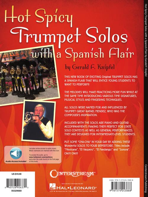 Hot Spicy Trumpet Solos with a Spanish FlairPublisher: Centerstream PublicationsCategory: Solo InstrumentalSeries: InstructionalFormat: Softcover Audio OnlineThis book of exciting original trumpet solos has a Spanish flair that will entice young students to want to perform. The...Regular price $23.99