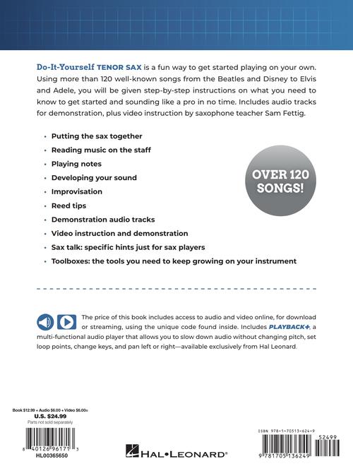 Author: Sam FettigDo-It-Yourself Tenor SaxThe Best Step-by-Step Guide to Start PlayingPublisher: Hal LeonardCategory: Solo InstrumentalSeries: Do It YourselfFormat: Softcover Media OnlineDo-It-Yourself Tenor Sax is a fun way to get started playing on your own. Using more...Regular price $29.99 -