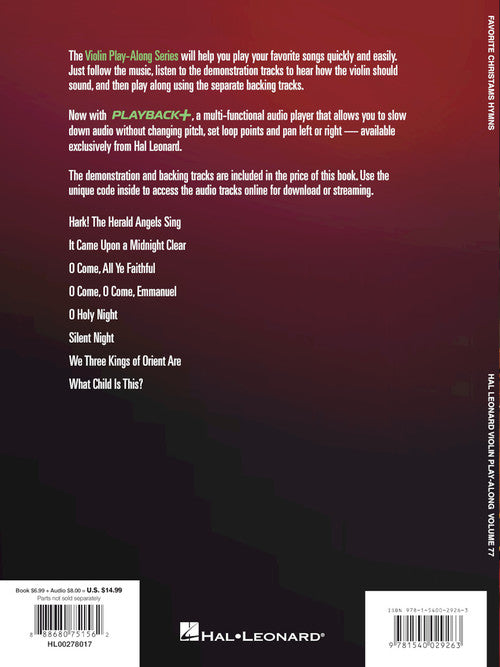 Favorite Christmas HymnsViolin Play-Along Volume 77Publisher: Hal LeonardCategory: Solo InstrumentalSeries: Violin Play-AlongFormat: Softcover Audio OnlineThe Violin Play-Along Series will help you play your favorite songs quickly and easily. Just follow the music, listen to the online...Regular price $17.99 -
