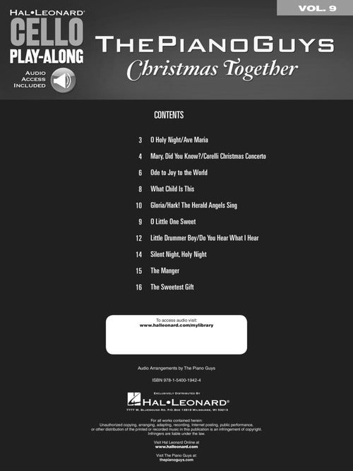 The Piano Guys - Christmas TogetherCello Play-Along Volume 9Publisher: Hal LeonardCategory: Solo InstrumentalSeries: Cello Play-AlongFormat: Softcover Audio OnlineThe Cello Play-Along Series will help you play your favorite songs quickly and easily. Just follow the printed music...Regular price $23.99 -