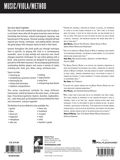 Berklee Practice Method: ViolaPublisher: Berklee PressCategory: Solo InstrumentalSeries: Berklee MethodsFormat: Softcover with CDAvailable for more than a dozen instruments, these coordinated method books teach how to play in a rock band. Learn what all the great...Regular price $17.99 -