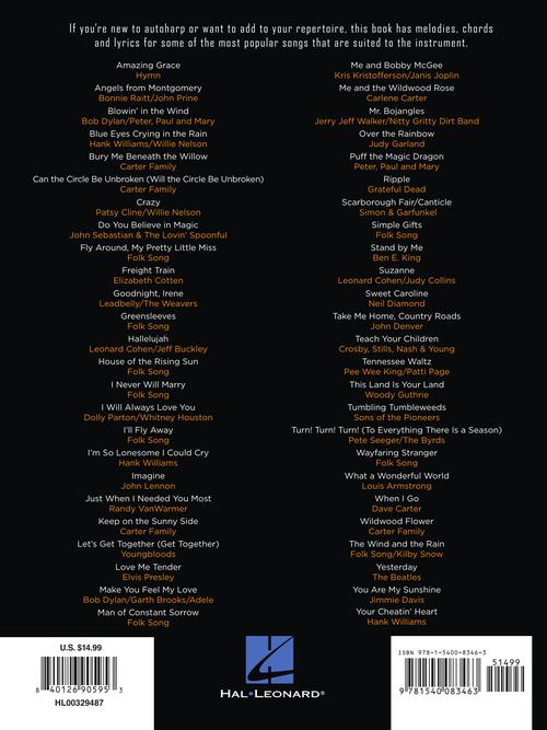 Composer: VariousFirst 50 Songs You Should Play on AutoharpPublisher: Hal LeonardCategory: Solo InstrumentalSeries: AutoharpFormat: SoftcoverIf you're new to autoharp or want to add to your repertoire, this book has melodies, chords, lyrics, and strumming instructions for...Regular price $23.99 -