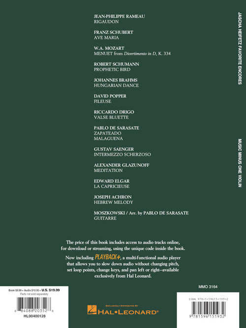 Jascha Heifetz - Favorite EncoresMusic Minus One ViolinPublisher: Music Minus OneCategory: Solo InstrumentalSeries: Music Minus OneFormat: Softcover Audio OnlinePerformed by Daniela Shtereva, violin Accompaniment: Joseph Seiger, piano Jascha Heifetz, great violinist of the 20th century, was...Regular price $27.99 -