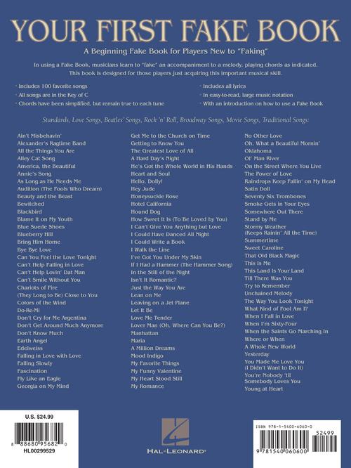 Your First Fake Book - 2nd EditionFeaturing Large Music Notation, Lyrics, & Simplified Harmonies C EditionPublisher: Hal LeonardCategory: Solo InstrumentalSeries: Easy Fake BookFormat: SoftcoverThis is a beginning fake book for players new to faking. By using...Regular price $29.99 -