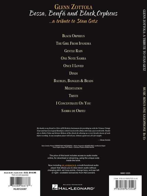 Bossa, Bonfá & Black Orpheus for Tenor Saxophone - A Tribute to Stan GetzMusic Minus One Tenor SaxophonePublisher: Music Minus OneCategory: Solo InstrumentalSeries: Music Minus OneFormat: Softcover Audio OnlineOriginal transcriptions for you to perform! The bossa...Regular price $23.99 -
