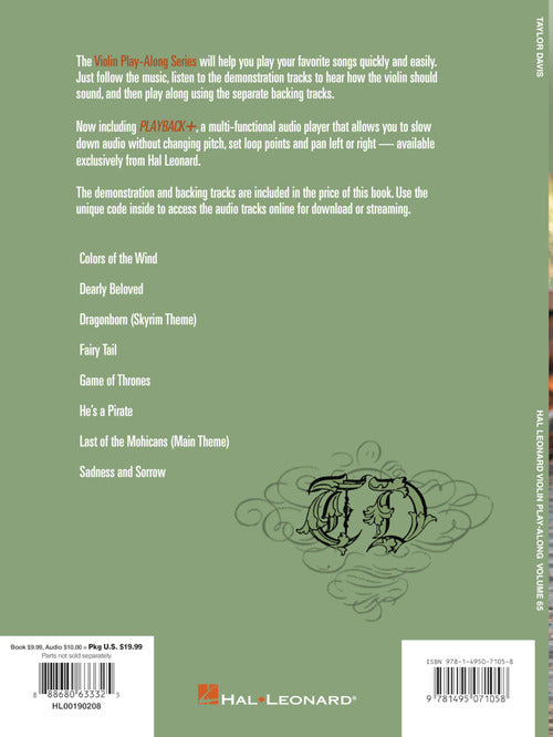 Taylor DavisViolin Play-Along Volume 65Publisher: Hal LeonardCategory: Solo InstrumentalSeries: Violin Play-AlongFormat: Softcover Audio OnlineThe Violin Play-Along series will help you play your favorite songs quickly and easily. Just follow the music, listen to the online audio...Regular price $23.99 -