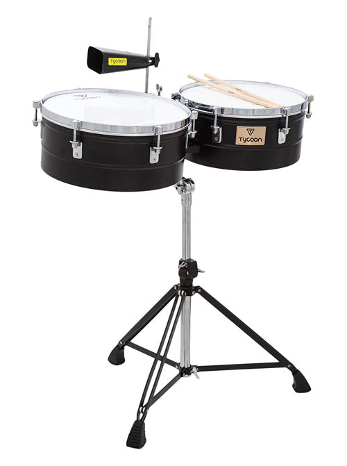 These timbales offer exceptional value and an authentic sound for the intermediate player, and they can be played separately or as an addition to a drum set. A heavy duty, fully height-adjustable, tiltable stand, cowbell mounting bracket with Tycoon Percussion TW-60 cowbell, pair of timbale sticks, and tuning wrench are included. The 13 inch. and 14 inch. diameter, 6-1/2 inch. deep black powder-coated shells are made from stainless steel and can easily be tuned with the included wrench. An excellent addition to any musician's set up!