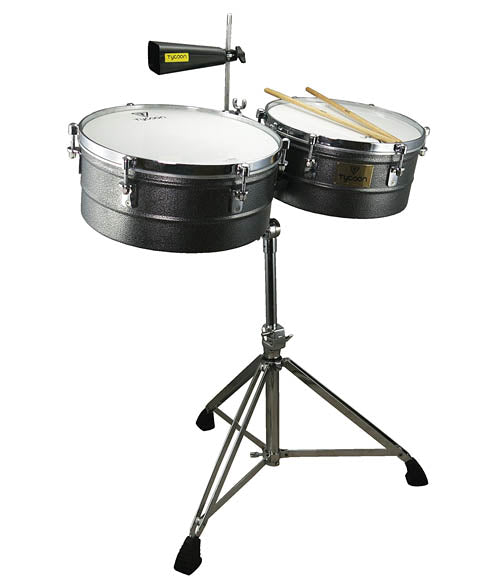 Designed for the professional or advanced player, these timbales offer superior quality and authenticity in sound. The 14 inch. and 15 inch. diameter chrome plated 8-1/2 inch. deep shells are made from stainless steel and can be tuned with the included tuning wrench. Also included are a heavy-duty, fully height-adjustable, tilting timbale stand, cowbell mounting bracket with Tycoon TW-60 cowbell, and a pair of timbale sticks.