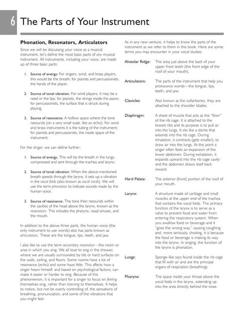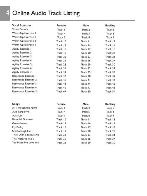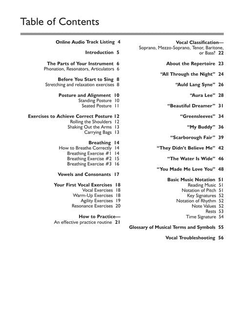 The Absolute Beginners approach has been designed to make learning to sing easier than ever before! Suitable for both male and female beginners, this step-by-step guide takes you through the basics, from how to stand and breathe correctly, to singing your first song. In one great book you'll find: a look-and-learn course that uses clear pictures and photos to illustrate every step of learning; practical advice and tips covering everything you need to know about posture, breathing, and performing; daily exercises that promote breath control, good tone, resonance and, most importantly, safe singing; an easy explanation on how to read basic music notation; audio tracks to let you hear how things should sound; full-length accompaniment tracks to sing along with; PLUS! audio tracks that you can TRANSPOSE allowing you to sing the songs in the key that suits your voice! Audio is accessed online using the unique code inside the book and can be streamed or downloaded. The audio files include PLAYBACK+, a multi-functional audio player that allows you to slow down audio without changing pitch, set loop points, change keys, and pan left or right.