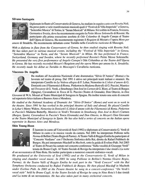 From Andrea Chénier: Come un bel dì di maggio · from Don Giovanni: Dalla sua pace la mia dipende · from La gioconda: Cielo! E mar! · from Madama Butterfly: Dovunque al mondo...Amore o grillo · Addio, fiorito asil · from Manon Lescaut: Guardate, pazzo son.