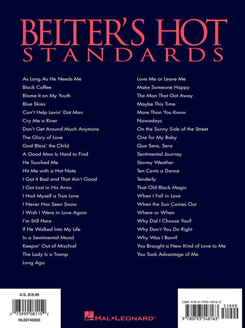 Belter's Hot Standards - Updated Edition 45 Classics Transposed Down for Women S