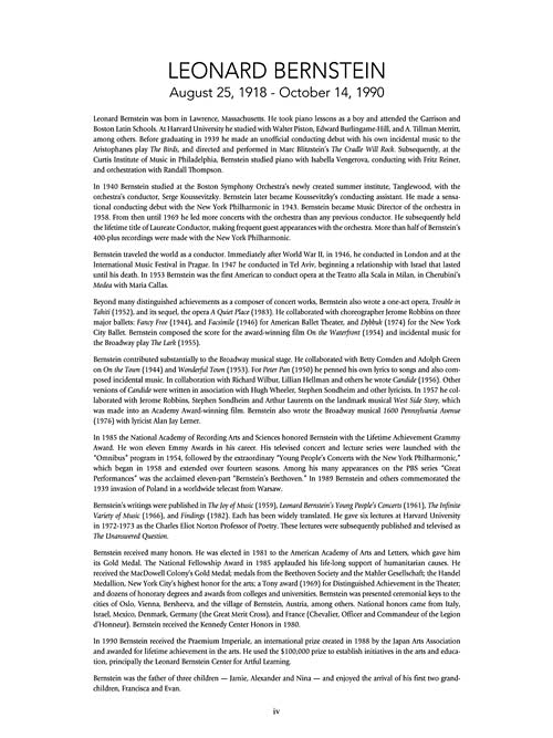 Leonard Bernstein is amply represented by selections from Candide, Mass, On the Town, Peter Pan, 1600 Pennsylvania Avenue, West Side Story, and Wonderful Town. Features 12 songs never before published, including cut songs from musicals. With a biography of the composer, and historical and plot notes about each show and song. There are different song lists for all three volumes. Contents: Ain't Got No Tears Left (cut from ON THE TOWN) · Another LoveBallad Of Eldorado (from CANDIDE) · Big Stuff (from the ballet FANCY FREE) · Bon Voyage (from CANDIDE) · Candide's Lament (from CANDIDE)Cool (from WEST SIDE STORY) · Dream With Me (from PETER PAN) · Duet For One (from 1600 PENNSYLVANIA AVENUE) · Easy (from MASS) · Glitter And Be Gay (from CANDIDE) · I Believe In God (from MASS) · I Can Cook Too (from ON THE TOWN) · I Don't Know (from MASS) · I Feel Pretty (from WEST SIDE STORY) · I Have A Love (from WEST SIDE STORY) · I Know A Fellow · In Our Time · It Must Be So (from CANDIDE) · It's Gotta Be Bad To Be Good · It's Love (from WONDERFUL TOWN) · A Little Bit In Love (from WONDERFUL TOWN) · Lonely Me (cut from ON THE TOWN) · Lonely Town (from ON THE TOWN) · Lucky To Be Me (from ON THE TOWN) · Maria (from WEST SIDE STORY) · My House (from PETER PAN) · My Love (from CANDIDE) · My New Friends (from THE MADWOMAN OF CENTRAL PARK WEST) · New York, New York (from ON THE TOWN) · Nothing More Than This (from CANDIDE) · One Hand, One Heart (from WEST SIDE STORY) · One Hundred Easy Ways To Lose A Man (from WONDERFUL TOWN) · Peter, Peter (from PETER PAN) · Philadelphia · A Quiet Girl (from WONDERFUL TOWN) · Say When (cut from ON THE TOWN) · Screwed On Wrong · So Pretty · Some Other Time (from ON THE TOWN) · Something's Coming (from WEST SIDE STORY) · Somewhere (from WEST SIDE STORY) · Spring Will Come Again (from THE SKIN OF OUR TEETH (a proposed but uncompleted musical adaptation of the Thornton Wilder play)) · The Story Of My Life (cut from WONDERFUL TOWN) · Take Care Of This House (from 1600 PENNSYLVANIA AVENUE) · Tonight (from WEST SIDE STORY) · Who Am I? (from PETER PAN) · World Without End (from MASS)