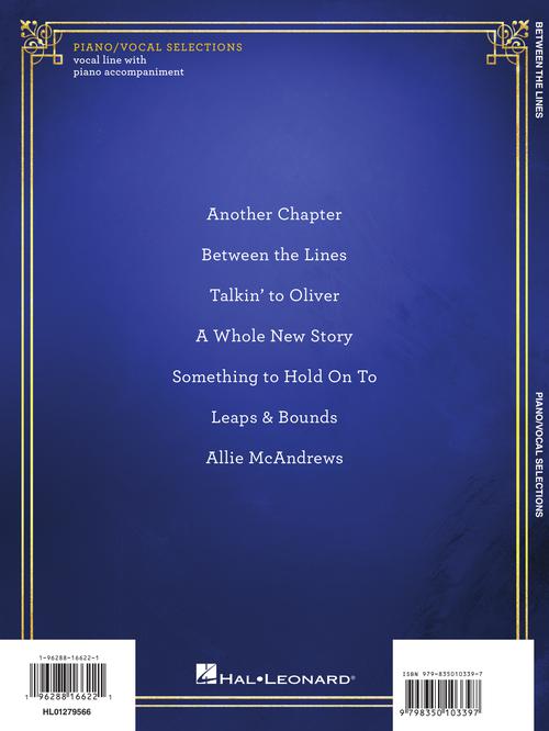 Based on the book by New York Times bestselling author Jodi Picoult, Between the Lines is an empowering and enchanting new musical for any of us seeking to find our place in the world. An outsider in a new school, Delilah seeks comfort in the pages of her favorite book, where she feels heard and understood. But as the lines between the two worlds of reality and fantasy begin to blur in extraordinary and astonishing ways, Delilah has to confront whether she alone has the power to rewrite her own story. Our matching folio features seven songs, including: Another Chapter · Between the Lines · Talkin' to Oliver · A Whole New Story · Something to Hold On To · Leaps & Bounds · Allie McAndrews.