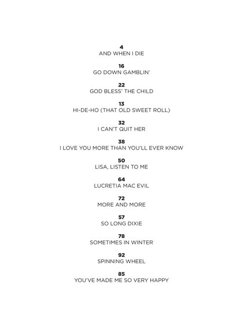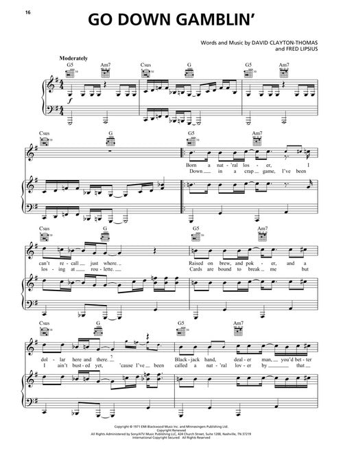 13 classic rock favorites from this American band first formed in 1967, arranged for piano, voice and guitar. Includes: And When I Die · Go Down Gamblin' · God Bless' the Child · Hi-De-Ho (That Old Sweet Roll) · I Can't Quit Her · I Love You More Than You'll Ever Know · Lisa, Listen to Me · Lucretia Mac Evil · More and More · So Long Dixie · Sometimes in Winter · Spinning Wheel · You've Made Me So Very Happy.