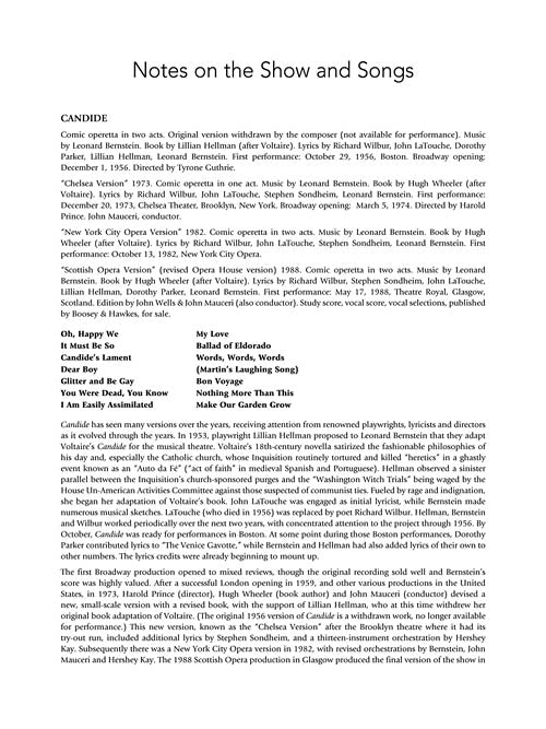 Expanded edition based on the published vocal score, featuring a Bernstein biography, notes on the show and songs, and manuscript facsimiles. With 13 songs, including complete version of Make Our Garden Grow.