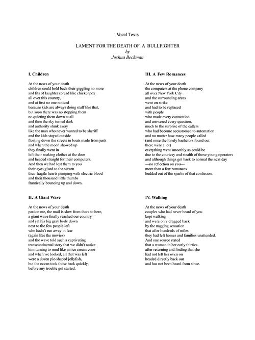 David Del Tredeci - Lament for the Death of a Bullfighter Boosey & Hawkes Voice