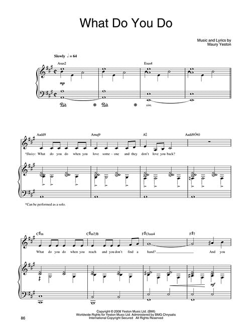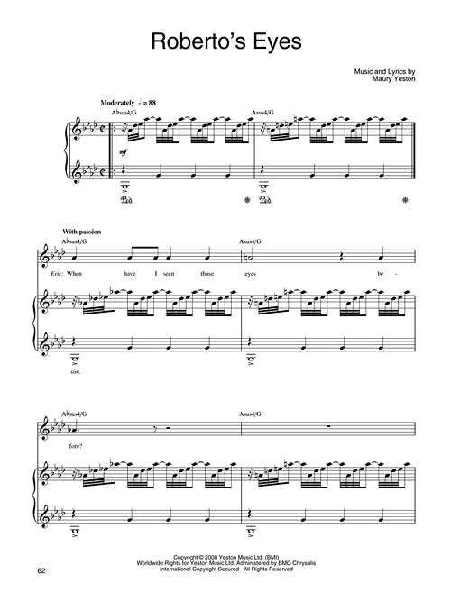 Here are 18 vocal selections from Maury Yeston's 2011 off-Broadway sensation, widely acclaimed for its lush and romantic score. Songs: Alive! · Alone Here with You · Bathing Music · Centuries · Death Is in the House · December Time · Finally to Know · How Will I Know? · I Thought That I Could Live · Life's a Joy · Losing Roberto · More and More · Pavane · Roberto's Eyes · Shimmy like They Do in Paree · What Do You Do · Who Is This Man? · Why Do All Men?. Includes a special 4-page section of full-color production photos, and a plot synopsis.