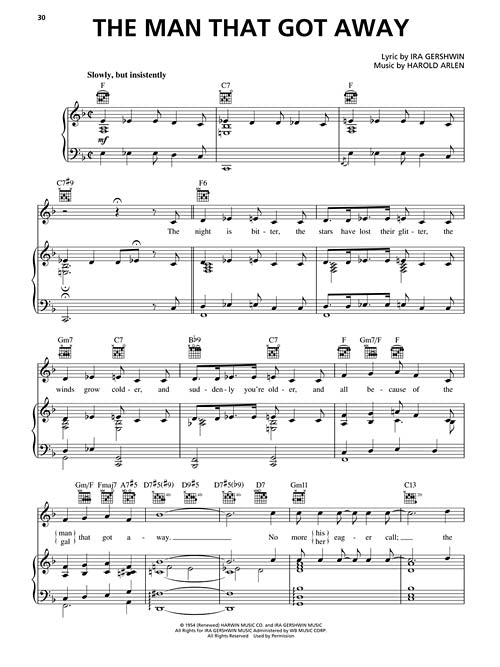 Set in December 1968, this acclaimed Broadway show centers around Judy Garland, poised to make a triumphant comeback ... again. This savagely funny drama shows Garland facing the challenge with her signature cocktail of talent, tenacity and razor-sharp wit, revealing the most brilliant star in her most demanding role: her life. Our matching folio features 16 signature Judy tunes: By Myself · Come Rain or Come Shine · For Me and My Gal · Get Happy · I Can't Give You Anything but Love · I Could Go on Singin' (Till the Cows Come Home) · Just in Time · The Man That Got Away · Over the Rainbow · San Francisco · Smile · The Trolley Song · When the Sun Comes Out · When You're Smiling · You Made Me Love You · Zing! Went the Strings of My Heart.