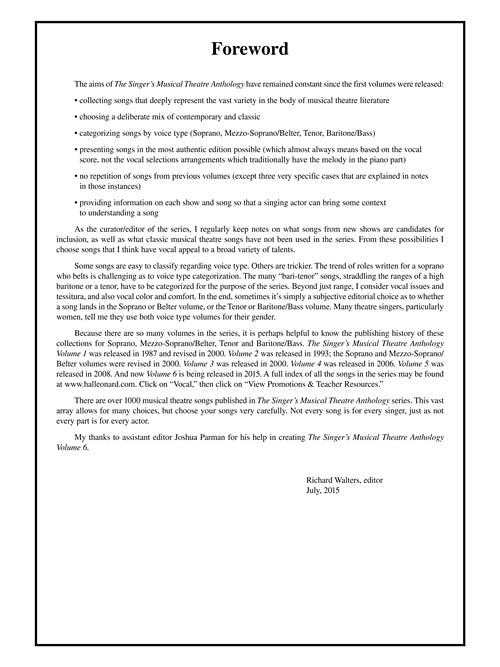 Hal Leonard Singer'S Musical Theatre Anthology - Volume 6 Baritone/Bass Book Onl