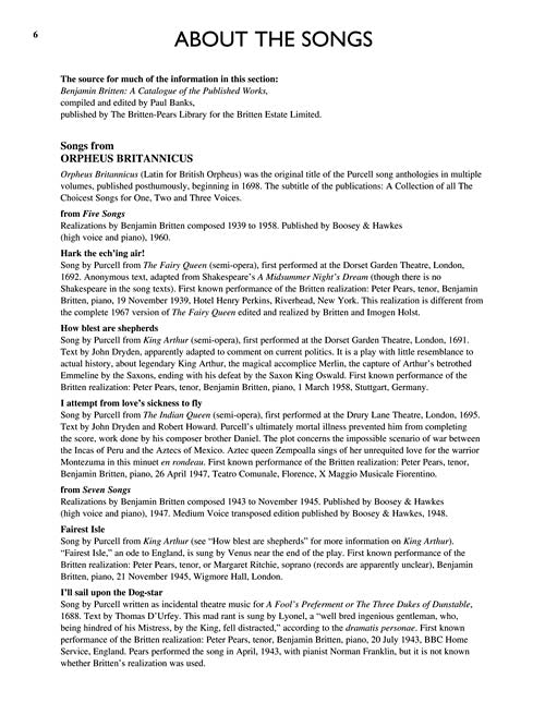 Songs by the great English Baroque composer Henry Purcell, realized by Britten, most suitable for student singers have been selected for this collection. Contents: Fairest Isle · Hark the ech'ing air · How blest are shepherds · I attempt from love's sickness to fly · I'll sail upon the Dog-star · If music be the food of love (1st version) · Man is for the woman made · Music for a while · On the brow of Richmond Hill · There's not a swain of the plain · Turn then thine eyes · We sing to him. Piano accompaniments available online for download or streaming.