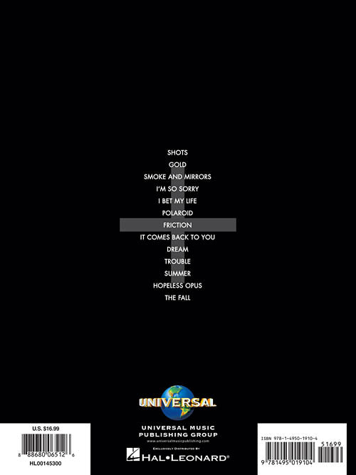 All 13 songs from the sophomore CD release by this Las Vegas-based rock band which reached #1 on the Billboard® 200 album charts. Includes: Dream · The Fall · Friction · Gold · Hopeless Opus · I Bet My Life · I'm So Sorry · It Comes Back to You · Polaroid · Shots · Smoke + Mirrors · Summer · Trouble.
