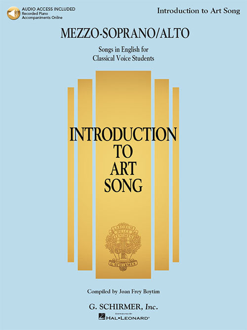 Joan Boytim has selected some of the easiest songs in English from The First Book of Solos series and transposed them for a different voice type for many of the selections in Introduction to Art Song, making the songs available to more students. Additionally, other suitable songs, not found in other Boytim collections, have been included. Each voice type has a unique song list. These books may be used by students in traditional voice lessons or by voice classes. Contents for the mezzo-soprano/alto volume include: ANIMAL CRACKERS (Richard Hageman) · AUTUMN (C. Alison-Crompton) · BLUEBIRD (Rudolph Schirmer) · COME TO THE FAIR (Easthope Martin) · THE GREEN CATHEDRAL (Carl Hahn) · THE GREEN DOG (Herbert Kingsley) · I LOVE ALL GRACEFUL THINGS (Eric H. Thiman) · INTO THE NIGHT (Clara Edwards) · A LITTLE CHINA FIGURE (Franco Leoni) · LONGING (Samuel Barber) · MUSIC, WHEN SOFT VOICES DIE (Samuel Barber) · NO FLOWER THAT BLOWS (Thomas Linley) · ORPHEUS WITH HIS LUTE (William Schuman) · THE POOL OF QUIETNESS (Thomas Vincent Cator) · REWARD (John Jacob Niles) · A SECRET (Roger Quilter) · THY LOVE (Samuel Barber) · WHEN DAISIES PIED (Thomas Arne) During the past 25 years, I have used the majority of Boytim's anthologies. I find these most recent publications to be the most useful of all. A student could use their voice type's volume for many years, eventually singing every song in it. They will be a staple in my studio in the future.-American Music Teacher