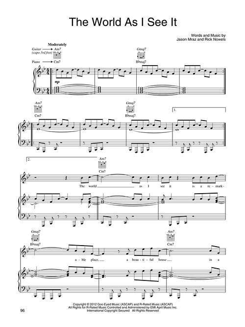 Matching folio to Mr. A-Z's 2012 chart-topping release. Includes: Everything Is Sound · The Freedom Song · I Won't Give Up · Living in the Moment · The World as I Know It · and more. Includes a bio and photo of Mraz.