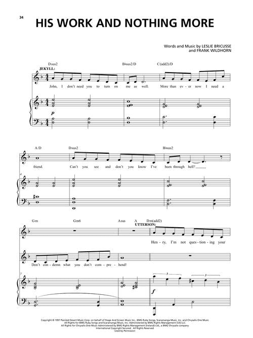 19 selections from the recent Broadway revival of the hit Wildhorn/Bricusse musical are featured in this collection, including the popular songs Someone like You and This Is the Moment, plus: Alive! · Bring on the Men · Confrontation · Facade · In His Eyes · Letting Go · Murder · A New Life · Once upon a Dream · The Way Back · and more.