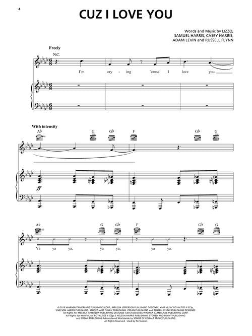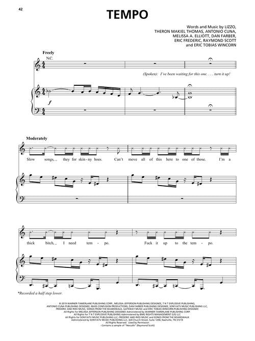 A dozen songs from the 2019 breakthrough album by this singer, songwriter, rapper, actress, and flautist. This matching folio includes piano/vocal/guitar arrangements of the songs: Better in Color · Crybaby · Cuz I Love You · Exactly How I Feel · Heaven Help Me · Jerome · Juice · Like a Girl · Lingerie · Soulmate · Tempo · Truth Hurts.