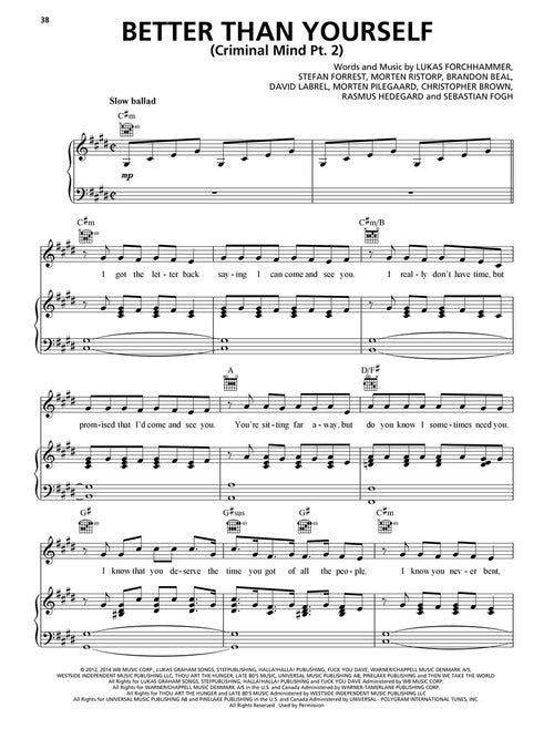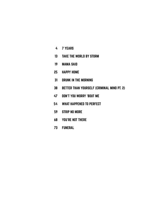 The self-titled album from this Danish rock band reached #3 on the Billboard® 200 Album charts. Our songbook contains piano/vocal/guitar arrangements of all 11 songs including the breakout hit 7 Years plus: Better Than Yourself (Criminal Mind Part 2) · Don't You Worry 'Bout Me · Drunk in the Morning · Funeral · Happy Home · Mama Said · Strip No More · Take the World by Storm · What Happened to Perfect · You're Not There.