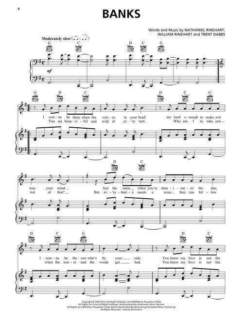 This songbook gathers 16 favorites from the first three albums from this Christian rock band from Seneca, South Carolina. Each song is arranged for piano and voice with guitar chord frames and includes full lyrics. Songs include: Banks · Brother · Forever on Your Side · Happiness · Hard Love · I Am Yours · I Wanna Remember · Into the Mystery · Keep Your Eyes Open · Let's Stay Home Tonight · Multiplied · Seasons · Something Beautiful · Testify · Washed by the Water · Who Am I.