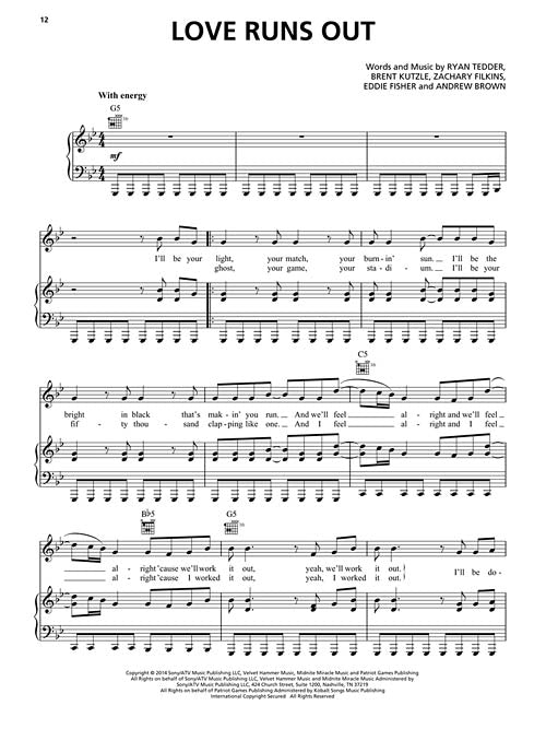 Mega-hit singles Counting Stars and Love Runs Out are both included in this collection matching the 2013 album release by this popular band from Colorado. The album reached #4 on the Billboard® 200 album charts and also includes the songs: Burning Bridges · Can't Stop · Don't Look Down · Feel Again · I Lived · If I Lose Myself · Light It Up · Preacher · Something I Need · What You Wanted · and more.
