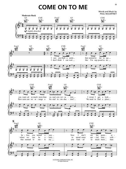 16 songs from the 17th solo studio album by the legendary Paul McCartney. This 2018 release includes piano/vocal/guitar arrangements of the songs: Back in Brazil · C-Link · Caesar Rock · Come on to Me · Confidante · Despite Repeated Warnings · Do It Now · Dominoes · Fuh You · Hand in Hand · Happy with You · Hunt You Down · I Don't Know · Naked · People Want Peace · Who Cares.